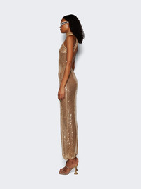 Mariacarla High Neck Sequin Maxi Dress nude