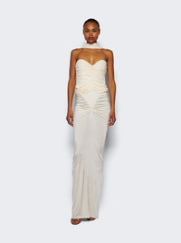 Details - Slim fit long - Ruched draping details - Draped straps that start at the back and wrap around the neck - Concealed zip fastening along the back - Model is 5'9"/175cm and is wearing a size FR36 - Material: 97% viscose, 3% elastane Brand Style: NA00303180642 Designer/Brand: THE NEW ARRIVALS ILKYAZ OZEL