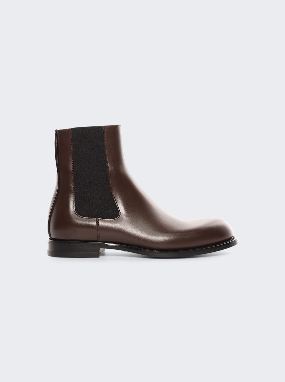 Details - Pull-on Chelsea boot in polished calfskin leather - Almond toe, elastic side panels, and stacked heel - Leather sole - 100% Calfskin Leather Dimensions: Listed in IT sizing Brand Style: F1555 LS65 Designer/Brand: THE ROW
