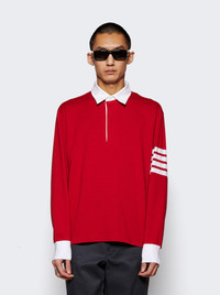 Details - Rugby-style polo shirt - Partial front button placket - Medium weight cotton jersey - 4-Bar detail at arm - Model is 6'1"/185cm and is wearing a size 2 Brand Style: MJP219A-06221 Designer/Brand: THOM BROWNE