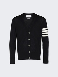 Fine Merino Wool 4-bar Relaxed Fit Cardigan Black