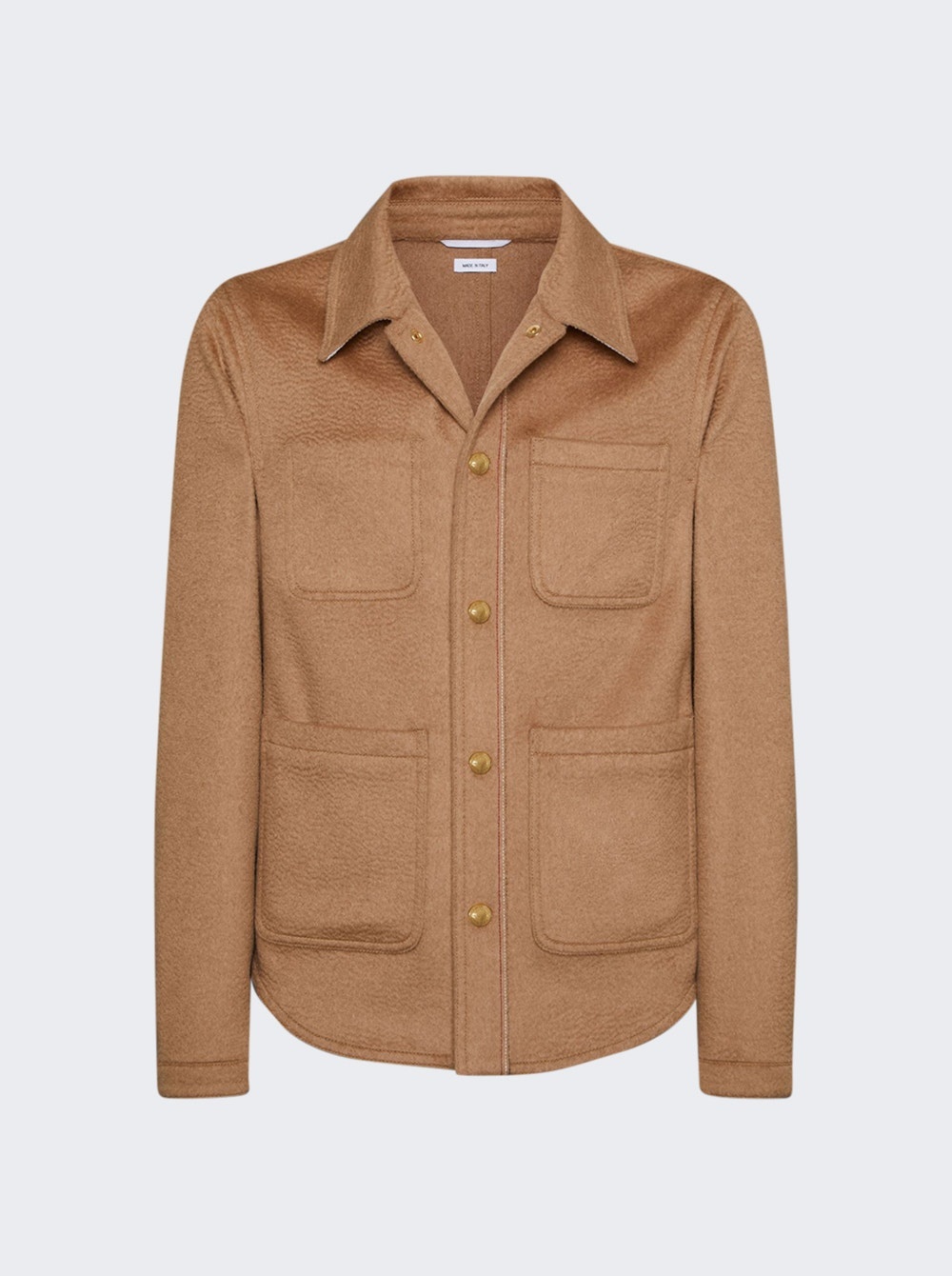 Details - Regular fit - Long sleeve - Button fastening - 4 front patch pockets - Interior pocket with name tag - Curved hem - Care according to label - Material: 100% Baby Camelhair - Model is 6'1"/185cm and is wearing a size 2 Brand Style: MJO220U-F0785 Designer/Brand: THOM BROWNE