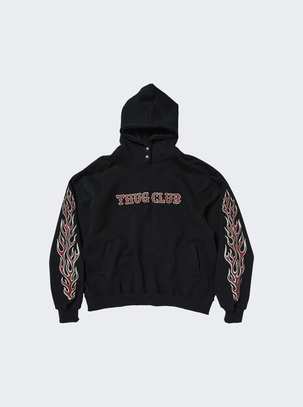 Details - Regular fit - Slip on - Long sleeves - Kangaroo pockets - Flames on the sleeves - Hooded - Care according to label - Material: 100% Cotton, 100% Leather Size Information: Vendor Color Code: Brand Style: TC25SS2201 Designer/Brand: THUG CLUB