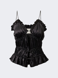 Details - Crafted in luxurious silk - Gathered design throughout the bodice - Finished with center front ties - Delicate tie detail adjustable straps Dimensions: Model is 5'9"/175cm and is wearing a size FR36 Composition: 100% Silk Care: Care according to label Brand Style: TVB116BLK Designer/Brand: TOVE