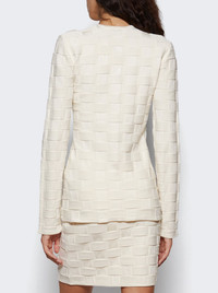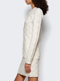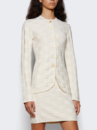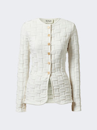Details - Basket weave knit jacket - Front button fastening - Collarless, slim-fit - Textured gold-tone buttons - Material: 83% Viscose, 17% Polyester Size Information: Vendor Color Code: Brand Style: TVN008WHT Designer/Brand: TOVE