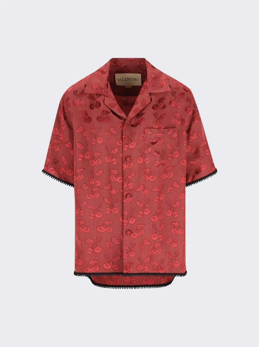 VALENTINO VISCOSE BOWLING SHIRT WITH CHERRYFIC JACQUARD PATTERN
