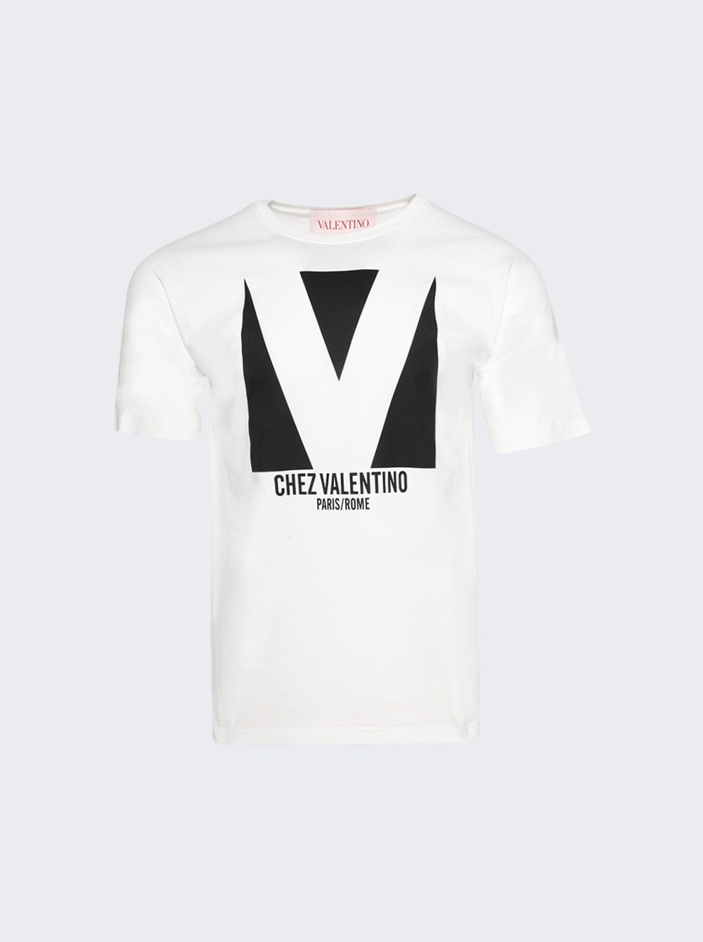 Details - Cotton t-shirt with Chez Valentino print - Regular fit - Model is 6'1"/185cm and is wearing a size M - Material: 100% Cotton Brand Style: 6V3MG16PAQ9 Designer/Brand: VALENTINO