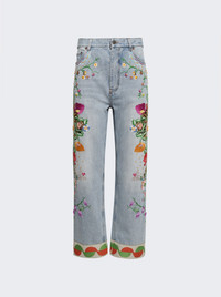 Details - Embroidered denim pants - Colored floral embroidery - Jacquard hems - Front closure with button and zipper - Model is 5'9"/175cm and is wearing a size US27 - Material: 100% Cotton Brand Style: 6B3DD19F94S Designer/Brand: VALENTINO