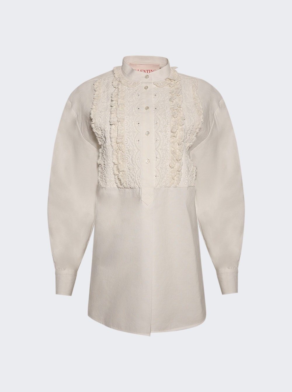 Details - Regular fit - Long sleeves - Dropped shoulders - Button cuffs - Ruffle detailing - Embroidered design - Button fastening - Unlined - 53% Cotton, 45% Linen, 2% Silk - Care according to label - Model is 5'9"/175cm and is wearing a size IT40 Brand Style: 6B3AEAB390D Designer/Brand: VALENTINO GARAVANI