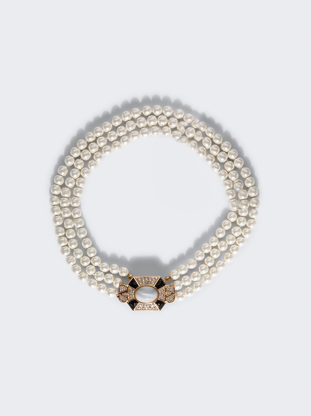 PAS PLUS NECKLACE IN METAL, ENAMEL, RESIN, PEARLS AND SWAROVSKI® CRYSTALS
