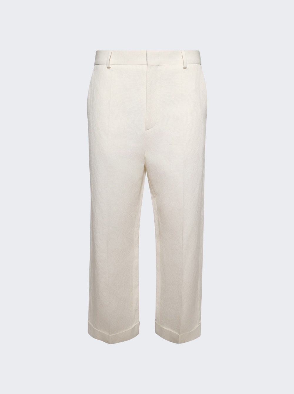 Details - Straight leg - Concealed front button, hook and zip fastening - Two side inset pockets - Two rear welt pockets - Belt loops - Care according to label - Material: 64% Cotton, 30% Linen, 6% Fabric - Model is 6'1"/185cm and is wearing a size IT48 Brand Style: 6V3RBJ70AL6 Designer/Brand: VALENTINO