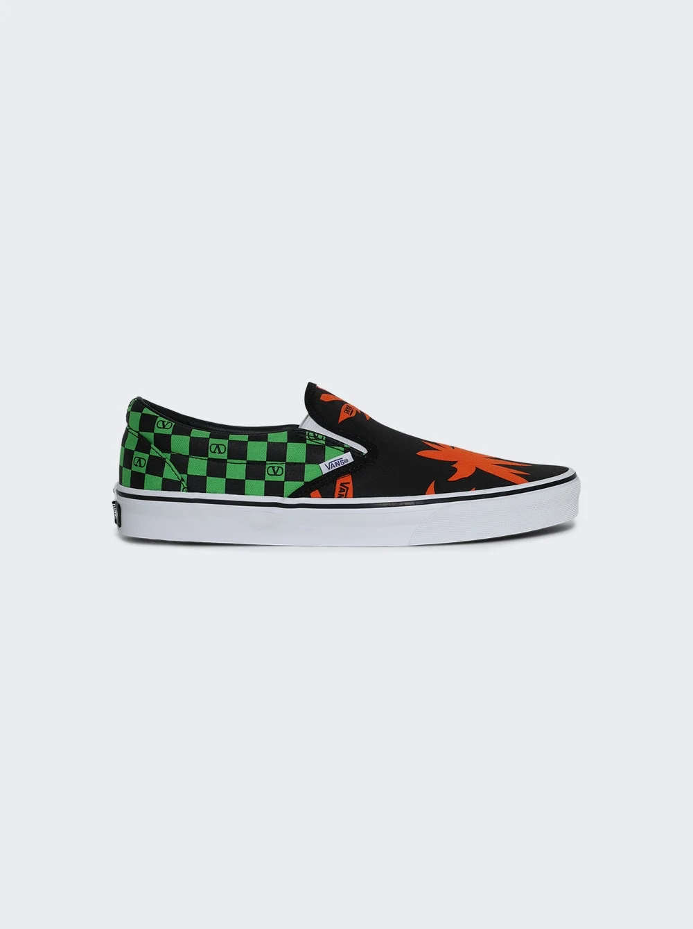 Details - Designed in collaboration with Vans - Slip-on fabric sneaker - VLogo Checkerboard print and tropical leaves print - Vans Classic rubber sole - Insole with VLogo Signature detail and Vans logo - Material: Cotton, Rubber Size Information: Vendor Color Code: Brand Style: 8Y2S0M96XWF Designer/Brand: VALENTINO