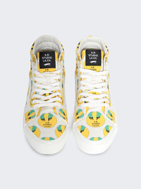 Details - OTW by Vans teams up once again with artist Sterling Ruby for a second collaborative collection with S.R. STUDIO. LA. CA. - S.R. STUDIO. LA. CA. is a ready-to-wear clothing and accessories collection by multidisciplinary artist Sterling Ruby - These high top sneakers combine Sterling Ruby's avant-garde approach with Vibram's renowned sole technology for superior grip and durability. - Upper and lining made with 40% US cotton - Screen printed graphics - Goatskin collar lining - Higher sidewall with gloss finish - Woven cobranded tongue label - Vibram outsole - Insole: Sola Foam All-Day-Comfort (ADC), 30% bio-based material, and vulcanized Vibram sole with tank tread Brand Style: VN000S51FS81 Designer/Brand: VANS