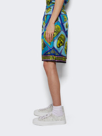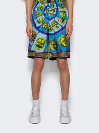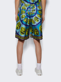 Twill Silk Mask Print Shorts Acid Green and Teal