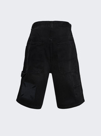 Aplique Biker Cross Hip-hop Denim Shorts Washed Black