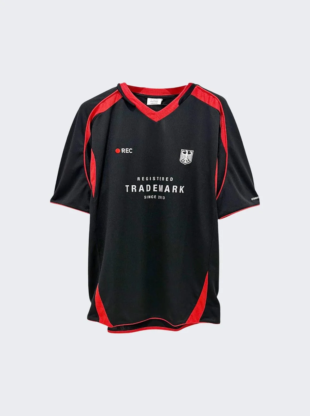 Details - Regular fit - Paneled construction - V-neck - Short sleeves - Graphic and text at chest - Logo embroidered at sleeve and abck collar - Straight hem - Care according to label - Material: 100% Polyester Vendor Color Code: Brand Style: ME76TR199BR Designer/Brand: VETEMENTS