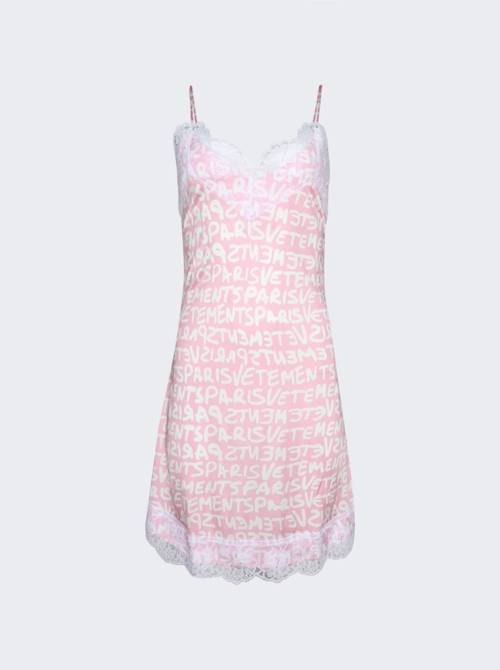 Details - Thin straps - V-neckline - Column silhouette - Topstitching - Pleated hem Dimensions: Model is 5'9"/175cm and is wearing a size S Composition: Fabric blend Care: Care according to label Brand Style: WE64DR250PW Designer/Brand: VETEMENTS