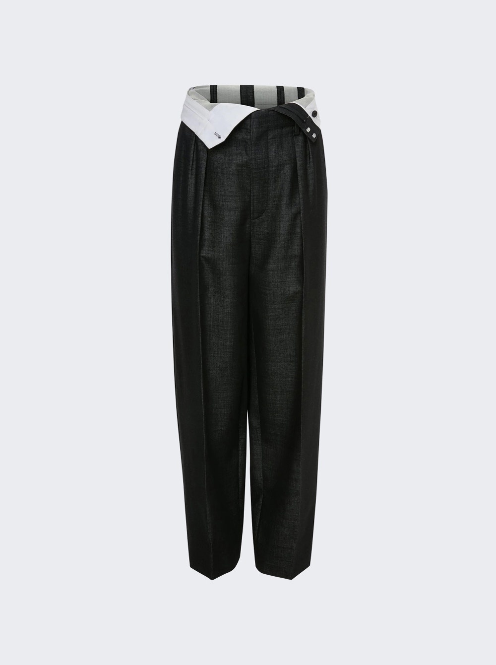 Details - Double waistband - Upper waistband can be fastened fully or opened and turned down - Pleated front - Full length - Side pockets - Back pockets - Waist hook and bar fastening with front fly - Care according to label - Material: 99% Wool, 1% Polyamide - Model is 5'9"/175cm and is wearing a size UK8 Brand Style: 1225WTR006171A Designer/Brand: VICTORIA BECKHAM