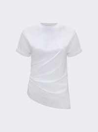 Details - Regular fit - Short sleeves - Gathered side detail - VB branding at centre back neck - Turned back short sleeve cuffs - Asymmetric hem - Care according to label - Material: 100% Cotton Vendor Color Code: Brand Style: 1325JTS006496A Designer/Brand: VICTORIA BECKHAM