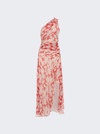 One-shoulder draped floral-print silk-georgette maxi dress Red