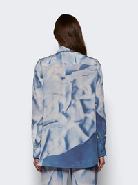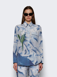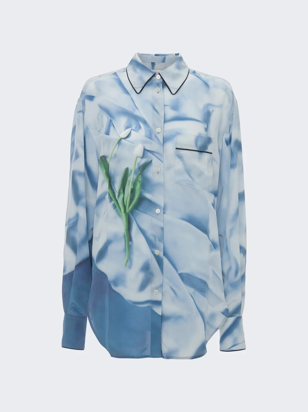 Piping Detail Pyjama Shirt In Ice Blue Satin Flowers