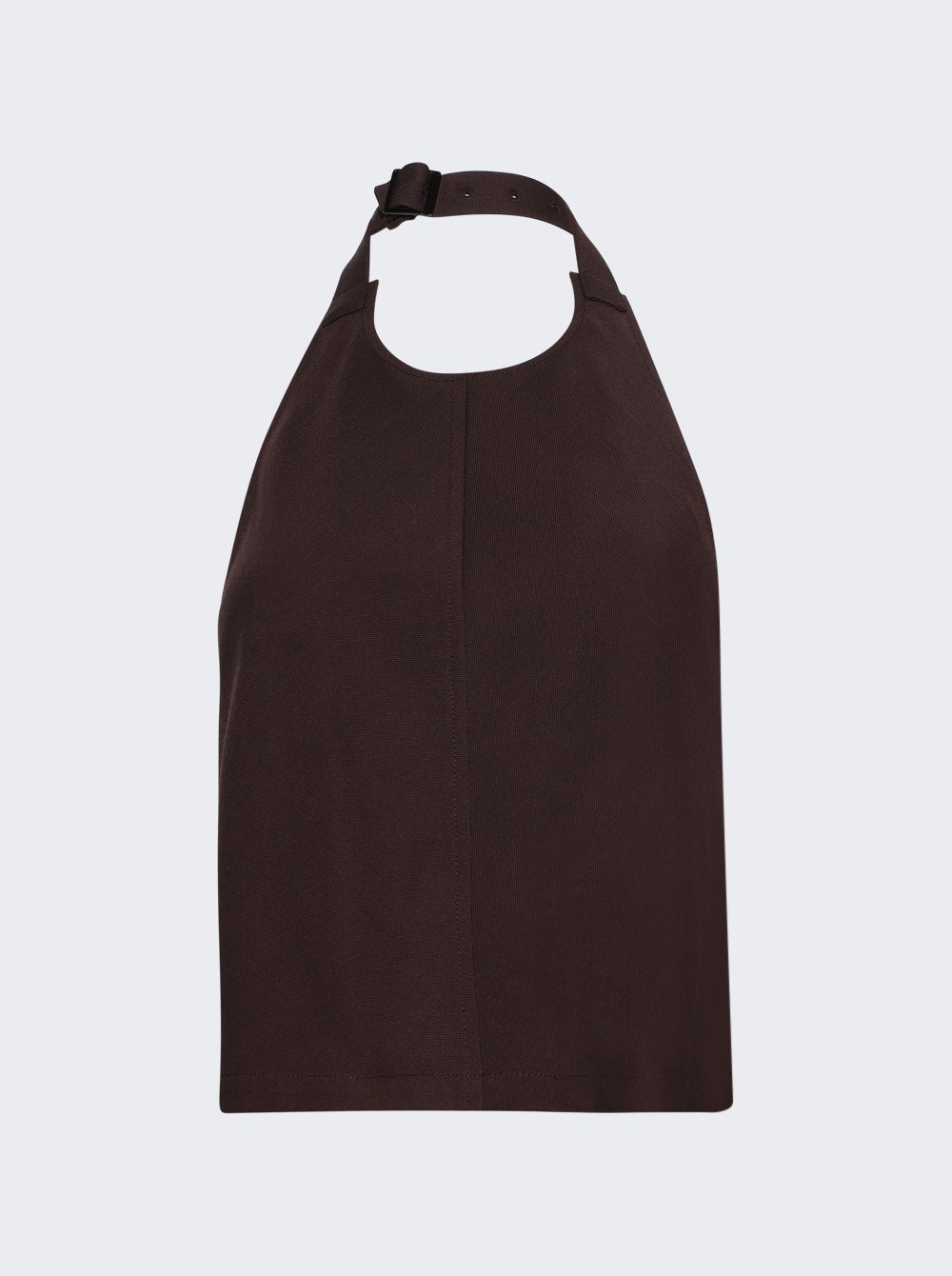 Details - Regular fit - Halter neck - Backless - Rear buckle fastening - Straight hem - Care according to label - Material: 100% Wool - Model is 5'9"/175cm and is wearing a size S Brand Style: W1058R12 Designer/Brand: WARDROBE.NYC