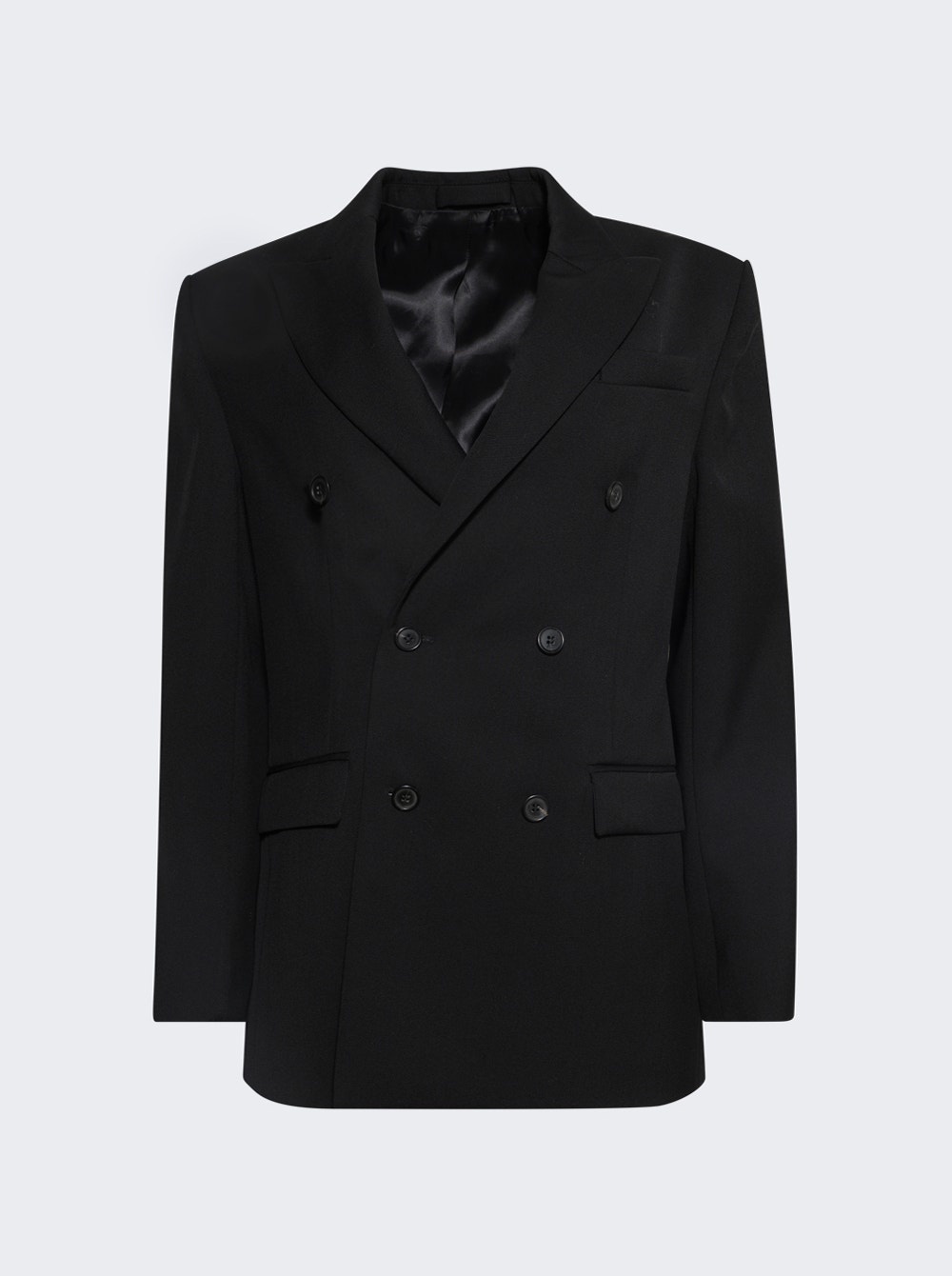 Details - Double breasted - Button fastening - Long sleeves - Peak lapels - Buttoned cuffs - Chest welt pocket - Two front flap pockets - Straight hem - Care according to label - Material: 100% Virgin Wool - Model is 5'9"/175cm and is wearing a size S Brand Style: W4007PC Designer/Brand: WARDROBE.NYC
