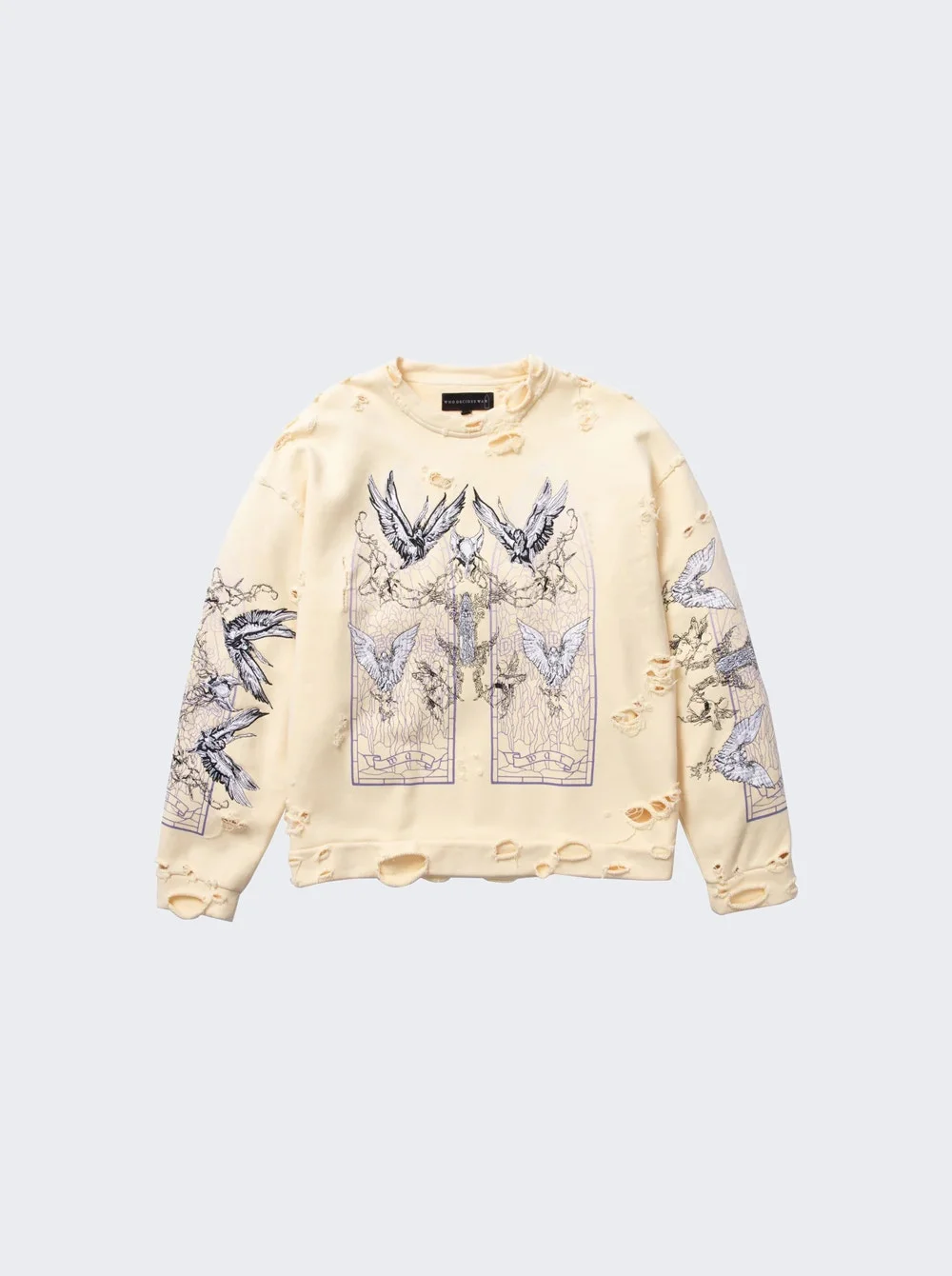 Details - Boxy fit - Long sleeves - Dropped shoulders - Crewneck - Distressed throughout - Screen print on the front - Ribbed cuffs and hem - Care according to label - Material: Cotton Vendor Color Code: Brand Style: 1110060001FW25 Designer/Brand: WHO DECIDES WAR