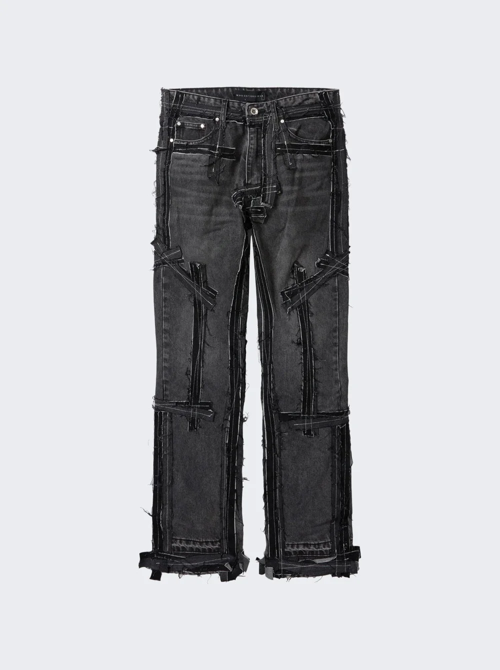 Details - Slim fit - Belt loops - Zip and button closure - 5 pocket design - Logo patch at back waistband - Logo-engraved silver-tone hardware - Contrast stitching in white - Care according to label - Material: 100% Cotton Vendor Color Code: Brand Style: 1120740002FW25 Designer/Brand: WHO DECIDES WAR