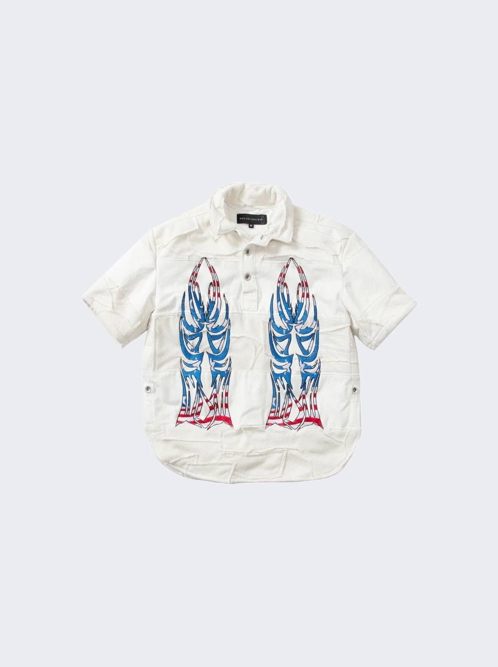 Details - Regular fit - Short sleeves - Button closure - Embroidered artwork on the front - Curved hem - Care according to label - Material: 100% Cotton - Model is 6'1"/185cm and is wearing a size M Brand Style: 1110250019SS25 Designer/Brand: WHO DECIDES WAR