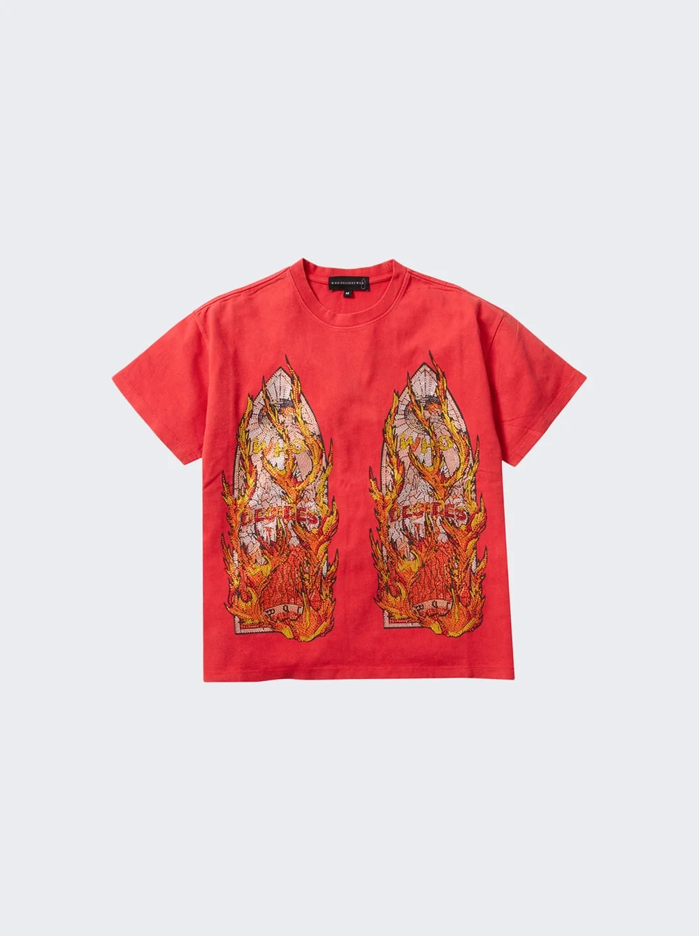 Details - Regular fit - Crewneck - Short sleeves - Screen print on the front - Rhinestone embellishment - Straight hem - Care according to label - Material: 100% Cotton Vendor Color Code: Brand Style: 1110520003FW25 Designer/Brand: WHO DECIDES WAR