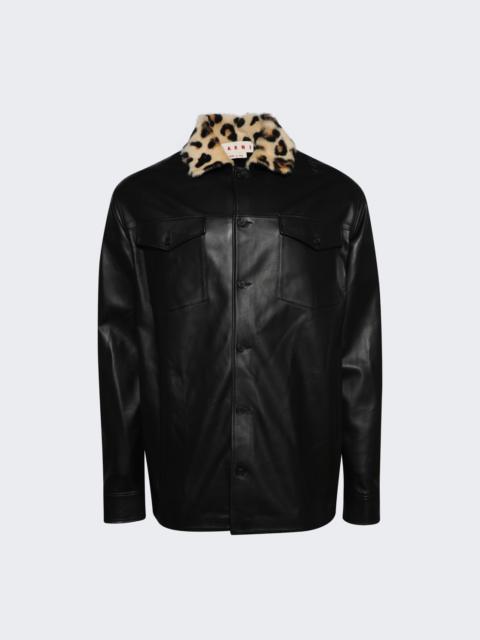 Leather Shirt With Shearling Collar Black