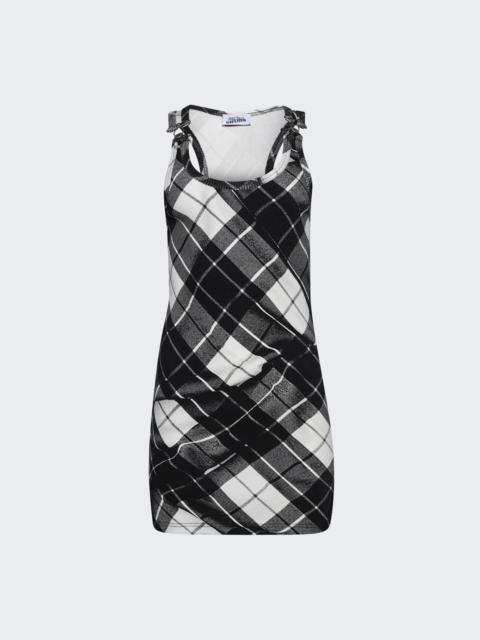 Ribbed Cotton Tank Top Mini Dress Black And White Tartan