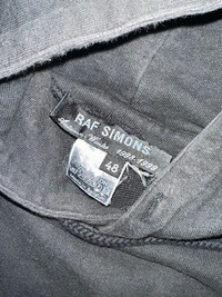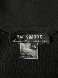 Archive Raf Simons hoodie Tagged size 48 Cropped fit, raglan cut sleeves Model is 5ft8-9 Used condition with fading and general wear from age See measurements No trades, no returns/refunds Follow for more