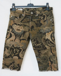 Printed denim shorts from SS14. There are no flaws and the fabric looks like new. Size 29, fits like a 30. Ships from Canada with UPS. @things_here1 Waist 16.14 in 41 cm Inseam 13.78 in 35 cm Leg Opening 7.68 in 19.5 cm Front Rise 9.84 in 25 cm Thigh 11.42 in 29 cm