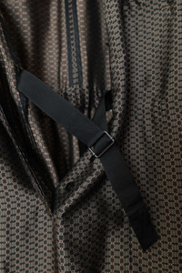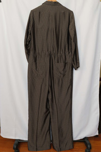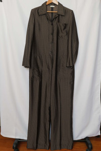 Perfect condition, like new. Great fabric and colour combo. There's an elastic belt on the inside that can optionally be used to cinch the back of the waist. Women's size 40. Intended to fit relaxed with dropped shoulders. Will also work for men's size XS. pit to pit: 53cm shoulders: 43cm sleeves: 60cm waist: 52.5cm front rise from waistband: 30cm leg opening: 27.5cm inseam: 76.5cm back length from collar seam to top of waistband: 48cm length from top of waistband to hem: 106cm total length from collar seam: 154cm