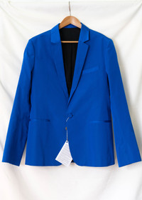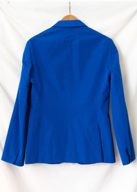 The fabric is a silk and cotton ottoman weave with a bit of shine that makes the blue color look quite intense. New and perfect. Comes with the stock tag but not the brand tag. The label size is 52 but it fits more like a 50. The waist measures 47cm. Ships from Canada with UPS. @things_here1 Chest 21.26 in 54 cm Length 29.13 in 74 cm Shoulders 18.31 in 46.5 cm Sleeve Length 25.98 in 66 cm