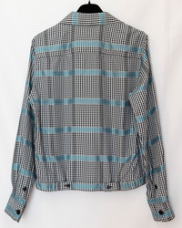 Perfect, like new condition. Viscose blend fabric. Black, white, blue, and gold. Size 36. Shipping from Canada. Bust 19.29 in 49 cm Length 22.83 in 58 cm Shoulders 16.54 in 42 cm Sleeve Length 24.21 in 61.5 cm