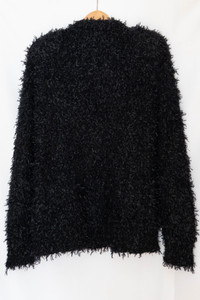 Knit from shredded strips of material. Structured shoulders. Perfect, like-new condition. Tag size L, fits M to L. Ships from Canada. @things_here1 Chest 22.05 in 56 cm Length 28.74 in 73 cm Shoulders 18.11 in 46 cm Sleeve Length 27.76 in 70.5 cm