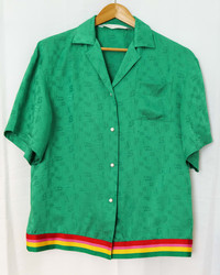 The shirt looks nearly new except for a stain that's mostly covered when the shirt is buttoned up. Great looking shiny, flowy fabric. Women's size 42. Ships from Canada with UPS. @things_here1 Chest 22.05 in 56 cm Length 26.57 in 67.5 cm Shoulders 20.47 in 52 cm Sleeve Length 10.04 in 25.5 cm