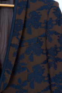 Cross stitch embroidery. Dark brown and dark blue. The fabric has a bit of stretch. Excellent condition, no flaws. Size 50. @things_here1 Chest 19.68 in 50 cm Length 28.94 in 73.5 cm Shoulders 17.91 in 45.5 cm Sleeve Length 26.38 in 67 cm