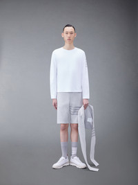 DETAILS & FIT A classic long sleeve, enriched with breathable side slits and Thom Browne emblems throughout. Crew neckline 4-bar detailing Name tag applique above hem Side vents Signature striped grosgrain loop tab Model is 6' 1" (185cm), wearing size 1 100% Cotton MJS245A-07323-100