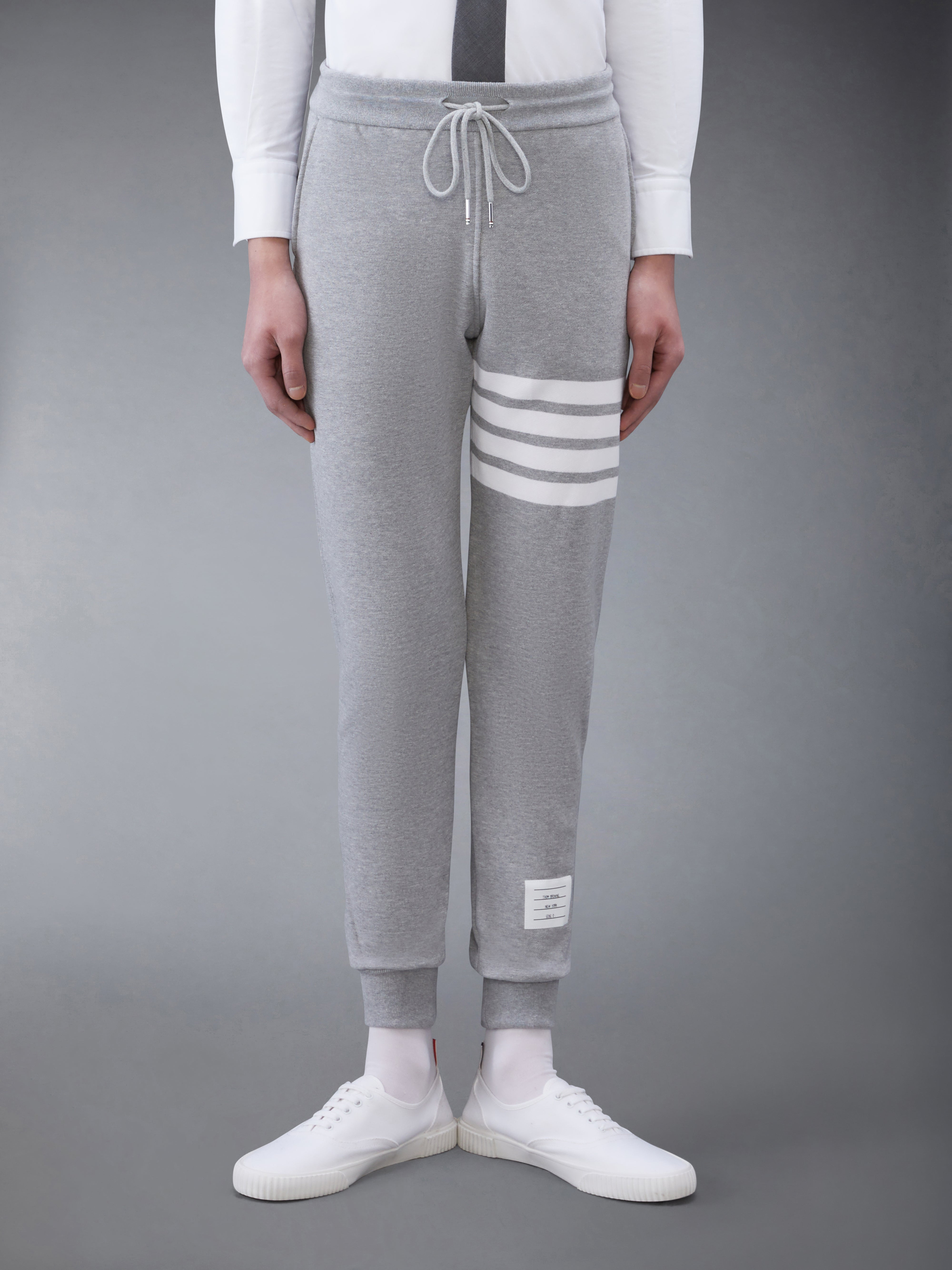 DETAILS & FIT Leisurewear made artful. Our Classic Loopback 4-Bar Sweatpant is adorned with our iconic 4-Bar detailing emulated after varsity stripes. Drawstring waistband with silver tone aglets 4-bar stripe detail at left thigh Slip side pockets Single back welt pocket Name tag applique above left cuff Signature striped grosgrain loop tab at back waist Model is 6' 1" (185cm), wearing size 0 100% Cotton Made in Japan MJQ008H-00535-068