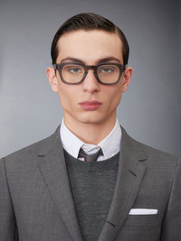 DETAILS & FIT Always true to our American DNA and inspired by mid-century aesthetic, the Thom Browne eyewear collection is ideal for those who appreciate a sleek and sophisticated look. It's designed for individuals who exude confidence and wish to tell a story through their fashion statement. Satin crystal grey acetate with titanium accents Clear lens Rectangular shape Signature 4-bar Striped enamel temple tips Eco-leather case Lens Width: 48mm Nose Bridge Length: 23mm Temple Length: 147mm 100% Acetate Made in Japan UEO412A-G0002-060