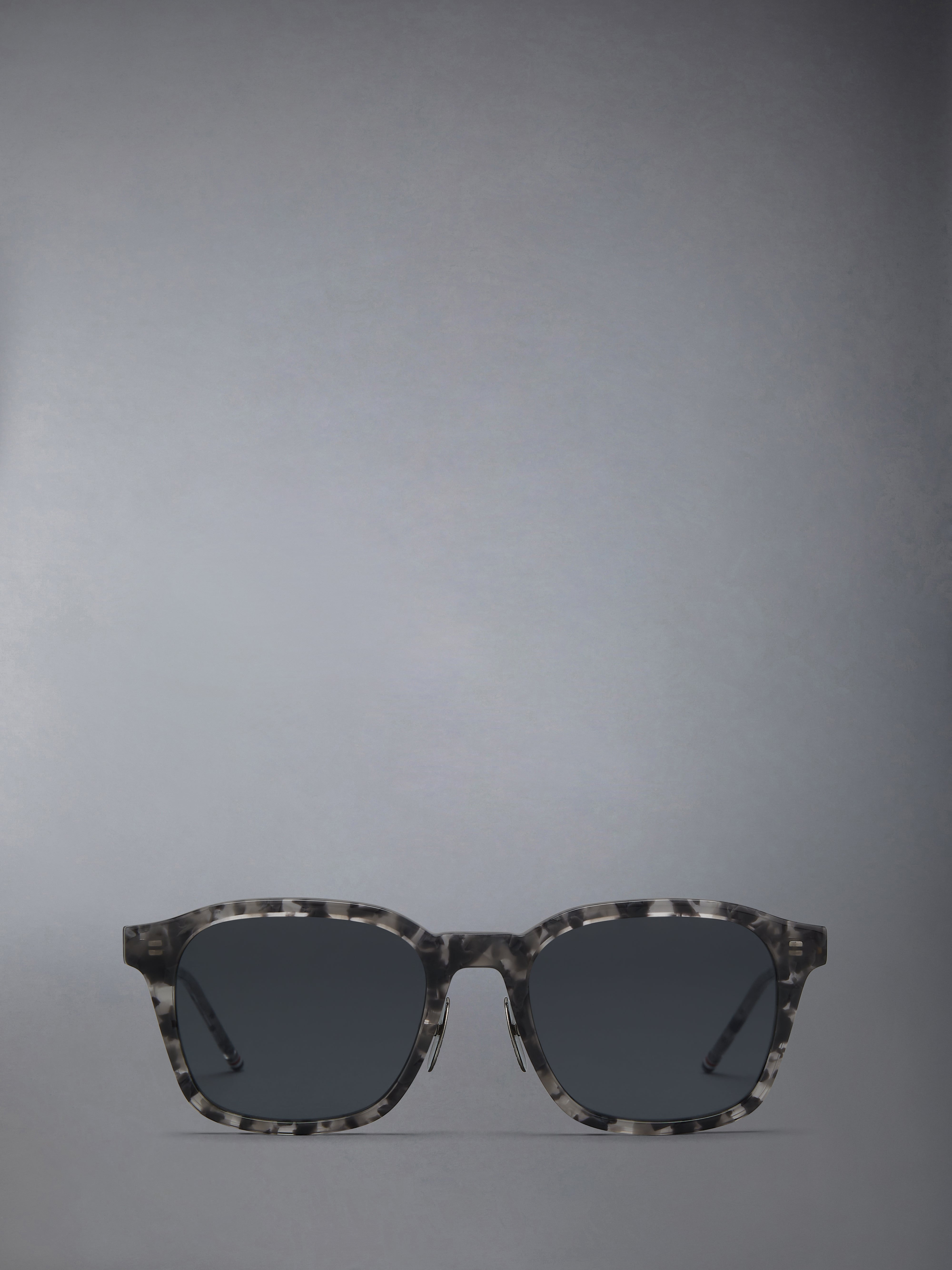 The epitome of quiet luxury. With clean lines and subtle Thom Browne detailing, these shades will transform any look into a polished expression of sophistication. Grey tortoise acetate frame Rectangle shape Lens color dark grey – ar Silver hardware/hinges Eco-Leather case with Signature striped grosgrain loop tab at entry Signature tricolor detailing at temple tips Eyewear pouch Standard cleaning cloth (20cm x 20cm) Lens Width: 52 & 54mm Nose Bridge Length: 19.5mm Temple Length: 147mm Made in Japan UES934A-G0002-025