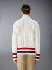 ARAN CABLE CASHMERE RWB STRIPE CARDIGAN