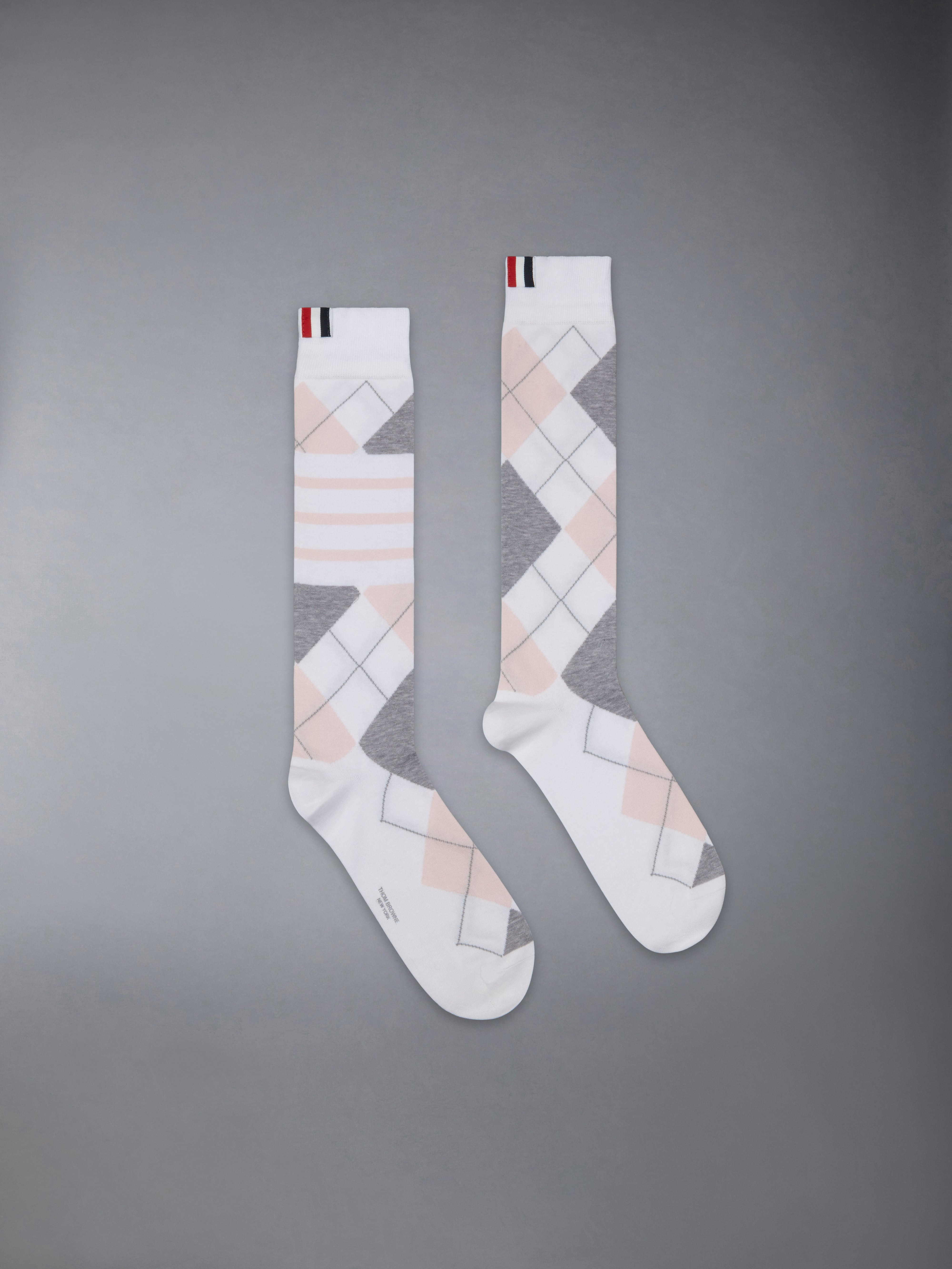 Featuring our iconic 4-bar detailing, these argyle socks are designed for versatile styling. For a distinctive look, mix and match them effortlessly with our gingham shorts or tweed trousers. Complete your ensemble with a pair of our leather pumps. 4-bar detailing Signature striped grosgrain loop tabs at heels 75% Cotton, 25% Polyamide Made in Italy FAS231A-Y3012-100