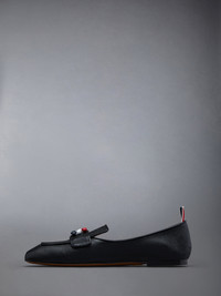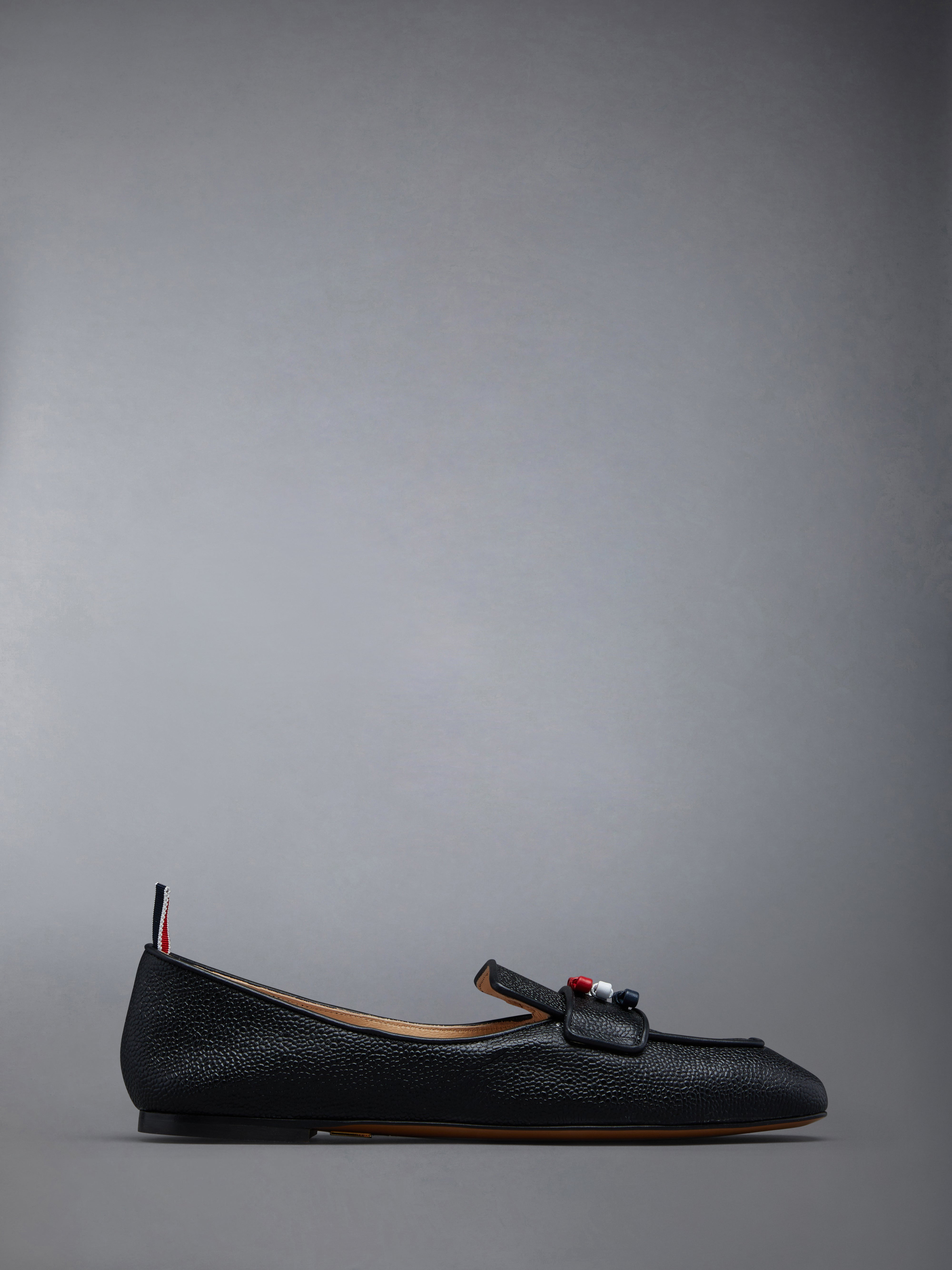 Black Pebble Grain Leather Flexible Leather Sole 3-Bow Loafer