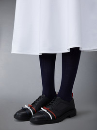 DETAILS & FIT Crafted with three striped leather bows at the toe, our Pebble Grain 3-Bow Longwing Brogue is a playful reinterpretation of our signature shoe. Lace up closure Perforated broguing throughout Lightweight rubber sole Leather insole and lining Signature striped grosgrain loop tabs at heels Upper: 100% Calf Leather Sole: 100% Rubber Lining: 100% Calf Leather Made in Italy FFD103A-06257-001