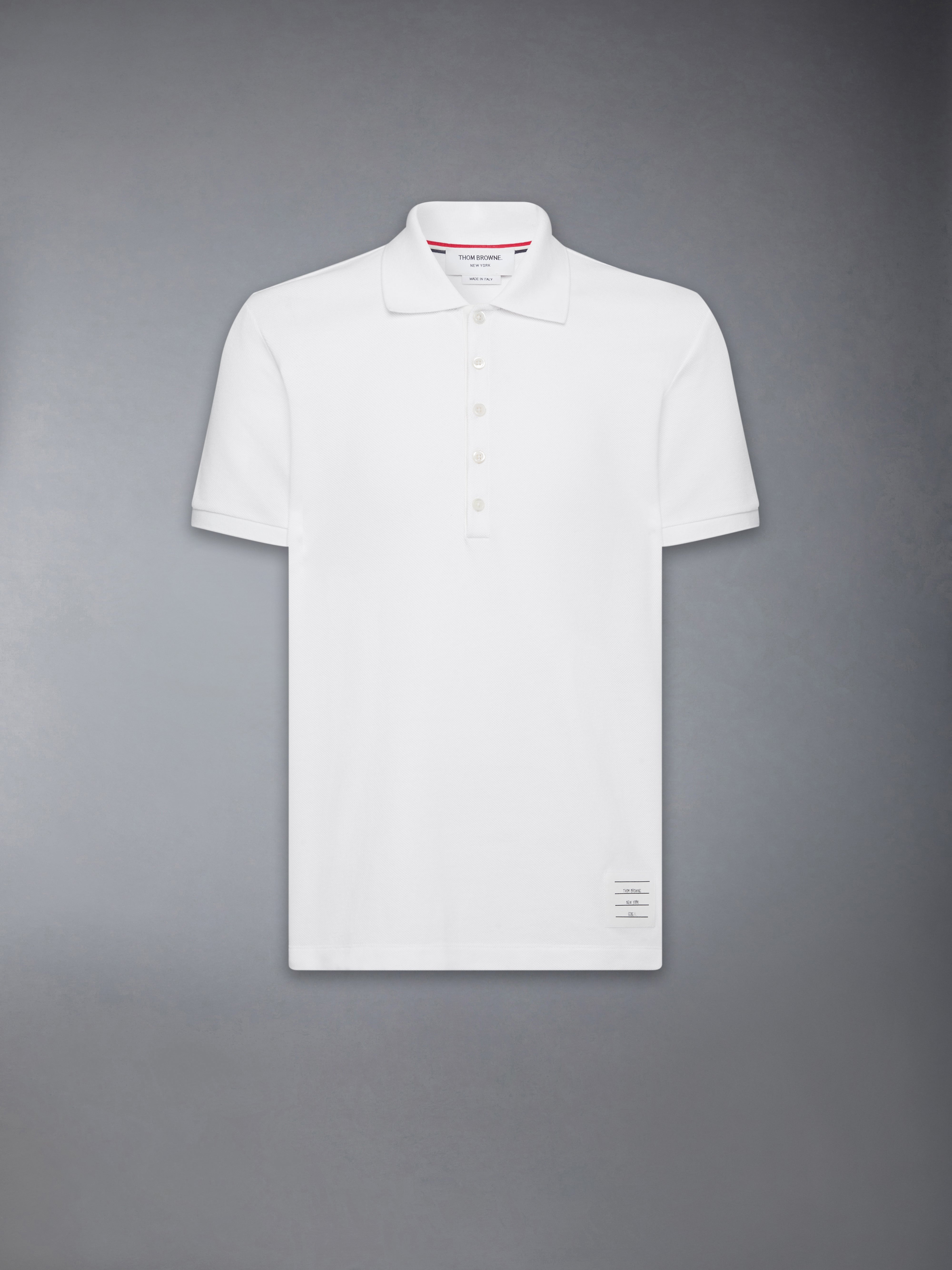 Effortless style meets sophistication in this breathable shirt. A classic polo collar pays homage to our sporty heritage, while breezy cotton fabric will keep you cool. Partial front button placket Name tag applique 4-bar detailing Signature striped grosgrain loop tab Model is 6'1" (185cm), wearing size 1 100% Cotton Made in Italy MJP110P-00050-100
